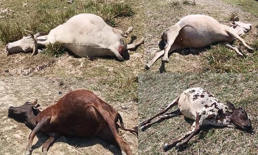 দিরাইয়ে পুকুরের পানি পান করে ১১টি গরুর মৃত্যু