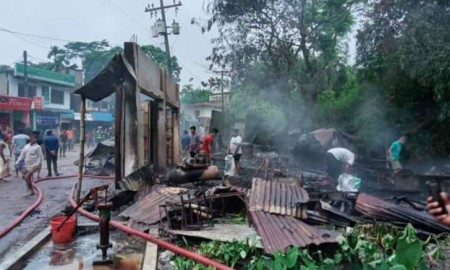 ছাতকে অগ্নিকাণ্ড, ১৪ দোকান পুড়ে ছাই, কোটি টাকার ক্ষয়ক্ষতি
