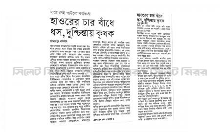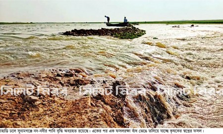 হাওরের চার বাঁধে ধস, দুশ্চিন্তায় কৃষক