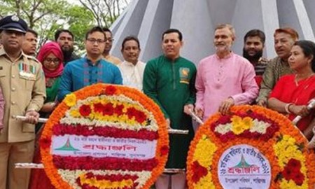 শান্তিগঞ্জে স্বাধীনতা দিবসে র্যালী ও স্মৃতিসৌধে পুষ্পস্তবক অর্পণ