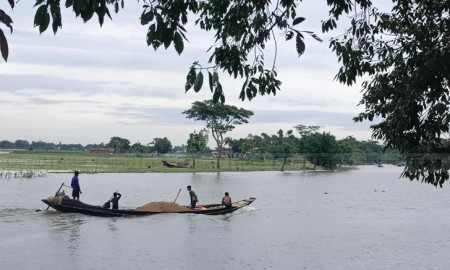সুনামগঞ্জের তাহিরপুরের শান্তিপুর নদী থেকে নির্বিচারে বালু লুট, আটক ৮