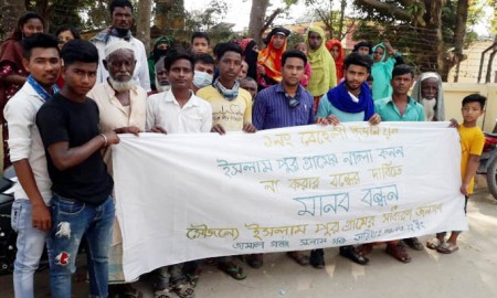 জামালগঞ্জে খাল খনন না করতে মানববন্ধন