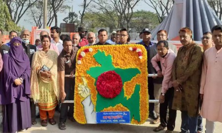 শান্তিগঞ্জে ঐতিহাসিক ৭ই মার্চ দিবস উপলক্ষে পুষ্পস্তবক অর্পণ