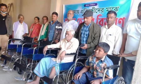 দিরাই শাল্লায় প্রতিবন্ধীদের মাঝে হুইলচেয়ার বিতরণ