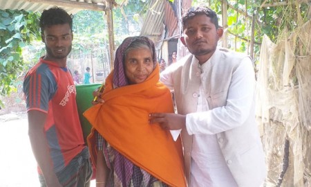 ধর্মপাশায় দরিদ্র পরিবারের বাড়িতে গিয়ে কম্বল বিতরণ