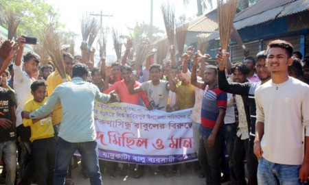 তাহিরপুরে উপজেলা চেয়ারম্যানের বিরুদ্ধে শ্রমিকদের বিক্ষোভ