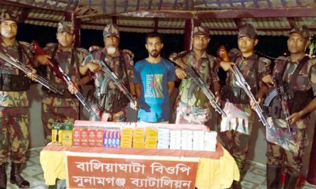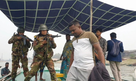 চোরাকারবারি, চাঁদাবাজি বন্ধে সুরমা নদীতে সেনাবাহিনীর ফায়ারিং মহড়া