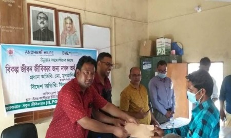 ধর্মপাশার দুই ইউনিয়নের ৪২ পরিবারের মধ্যে নগদ অর্থ বিতরণ