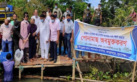 জগন্নাথপুরে হাওরে মাছের পোনা অবমুক্ত