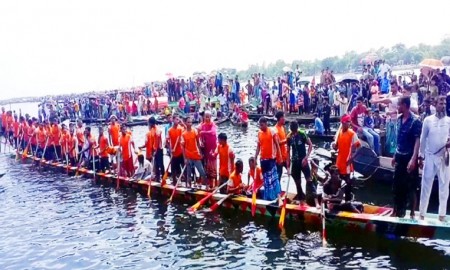 সুনামগঞ্জে নৌকাবাইচে দর্শনার্থীর ঢল