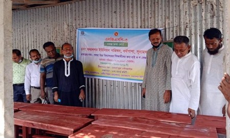 ধর্মপাশায় বিদ্যালয়ে ২২ জোড়া বেঞ্চ ও শিক্ষাতরী হস্তান্তর