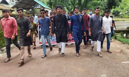 ধর্মপাশায় ছাত্রলীগের বিক্ষোভ মিছিল ও প্রতিবাদ সমাবেশ