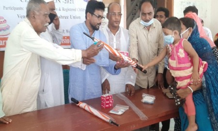 ধর্মপাশায় ৫০০ শিশু পেল মাস্ক, সাবান ও ছাতা
