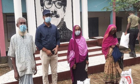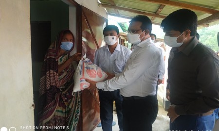 ধর্মপাশায় ৪টি কর্মহীন পরিবারকে খাদ্যসামগ্রী প্রদান