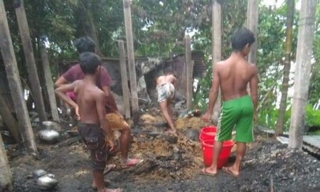 ধর্মপাশায় আগুনে পুড়ল কৃষকের ঘর