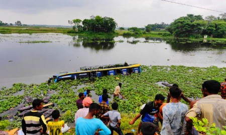 দক্ষিণ সুনামগঞ্জে যাত্রীবাহী বাস খাদে পড়ে নিহত ১, আহত ১০