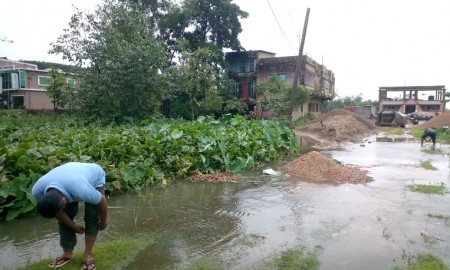 সুনামগঞ্জে খালে বাঁধ দিয়ে রাস্তা, বৃষ্টি হলেই জলাবদ্ধতা