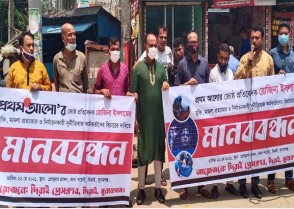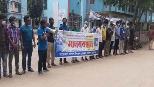 রোজিনা ইসলামের মুক্তির দাবিতে ধর্মপাশায় মানববন্ধন