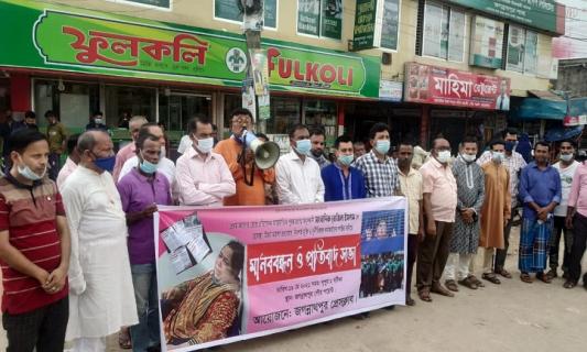 রোজিনা ইসলামের মুক্তির দাবিতে জগন্নাথপুরে মানববন্ধন