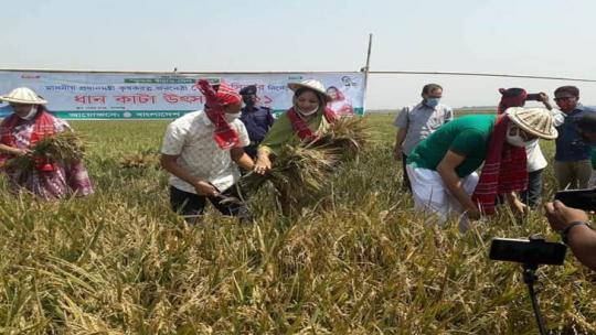সুনামগঞ্জে কৃষকের ধান কাটলেন দুই মহিলা এমপি!