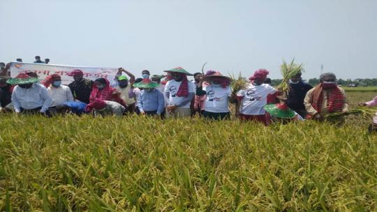 জামালগঞ্জে কৃষকের ধান কাটলেন বিভাগীয় কমিশনার