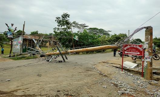 সুনামগঞ্জে ঝড়ে ভেঙেছে বিদ্যুতের খুঁটি, বন্ধ সড়ক যোগাযোগ