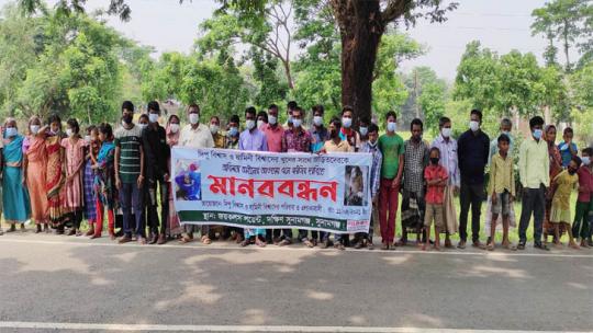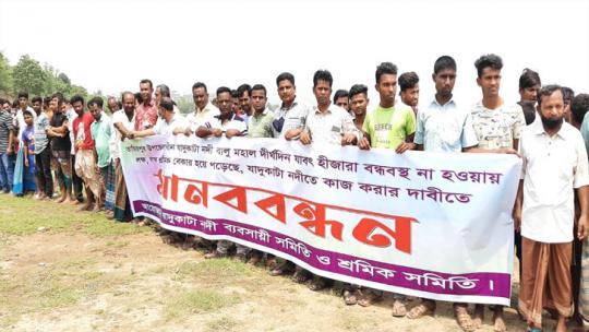 যাদুকাটায় বিপাকে শ্রমিক ও ব্যবসায়ীরা, কাজের দাবিতে মানববন্ধন
