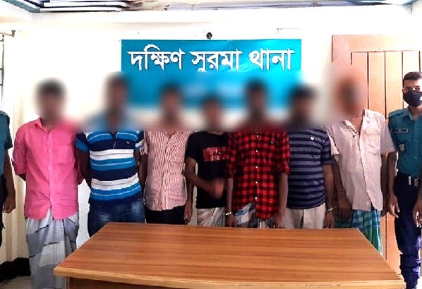 আটককৃতরা হলো, সাহাজুল ইসলাম রিপন (১৯), মো. ঠান্ডা মিয়া (২৬), হযরত আলী (২৬), বাদশা মিয়া (৩৫), ইব্রাহিম (৩৭), আহমদ আলী (৫২) ও মো. বকুল মিয়া (৩২)।