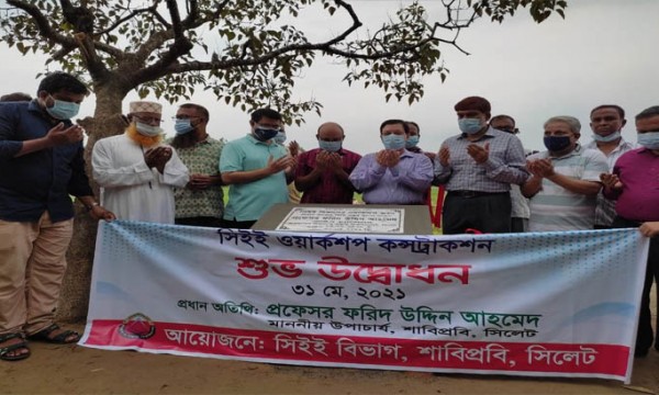 শাহজালাল বিজ্ঞান ও প্রযুক্তি বিশ্ববিদ্যালয়ে (শাবিপ্রবি) সিভিল এন্ড এনভায়রনমেন্ট ইঞ্জিনিয়ারিং (সিইই) বিভাগের ২তলা বিশিষ্ট ওয়ার্কশপ ভবনের ভিত্তিপ্রস্তর স্থাপন উদ্বোধন করা হয়েছে।