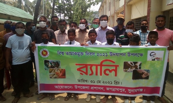 বিশ্ব তামাকমুক্ত দিবস উদযাপন উপলক্ষে সুনামগঞ্জের জগন্নাথপুর উপজেলা প্রশাসনের আয়োজনে র্যালি অনুষ্ঠিত হয়েছে।