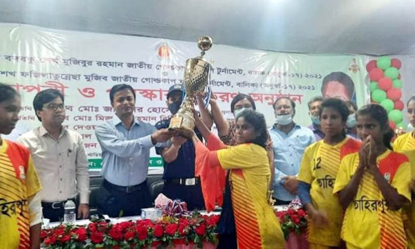 সুনামগঞ্জ জেলা পর্যায়ে বঙ্গমাতা শেখ ফজিলাতুন্নেছা মুজিব জাতীয় গোল্ডকাপ ফুটবল টুর্নামেন্ট (বালিকা) ২০২১ এর ফাইনালে তাহিরপুর বালিকা দল দিরাই বালিকা দলকে ট্রাইব্রেকারে ১-০ গোলে হারিয়ে চ্যাম্পিয়ন হয়েছে।