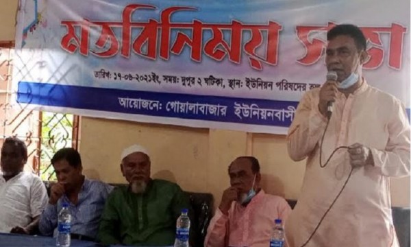 ইউনিয়নের চেয়ারম্যান আতাউর রহমান মানিকের সভাপতিত্বে এবং বাজার ব্যবস্থাপনা কমিটির সাধারণ সম্পাদক তাজ উদ্দিন ও ছাত্রলীগ নেতা মিজানুর রহমানে সঞ্চালনায় সভায় বক্তব্য দেন, সাবেক চেয়ারম্যান পীর মজনু মিয়া, হারুন মিয়া, আওয়ামী লীগ নেতা আলাউর রহমান আলা, শাহ নুরুর রহমান সানুর, মিয়াফর আলী, জাবেদ আহমদ আম্বিয়া, ডি কে জয়ন্ত, মনির আলী, দিলদার আলী, গোয়লাবাজার বণিক সমিতির সাধারণ সম্পাদক পরিমল দেব, ব্যবসায়ী সোনাফর আলী সুনাই, বেলাল আহমদ, রুমেল আহমদ, মকসুদ আলী, সাংবাদিক আবদুল মতিন প্রমুখ।