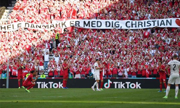 ডেনমার্কের অসুস্থ মিডফিল্ডার ক্রিস্টিয়ান এরিকসেনকে সম্মান জানাতে মাঠের সবাই দাঁড়িয়ে দশ মিনিট করতালি দেন।