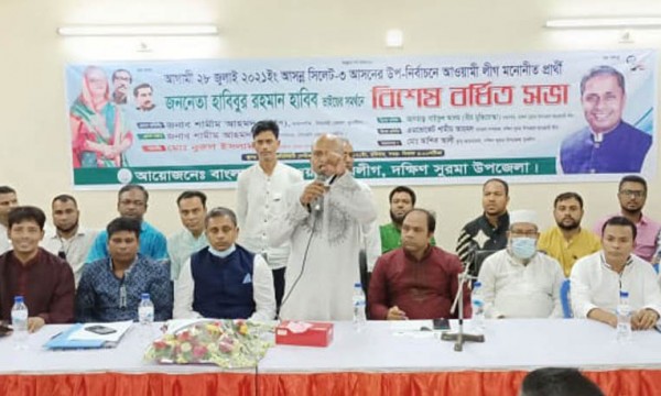 সিলেট-৩ আসনের উপনির্বাচনে আওয়ামী লীগের মনোনীত প্রার্থী হাবিবুর রহমান হাবিবকে নির্বাচিত করতে দক্ষিণ সুরমা যুবলীগের বিশেষ বর্ধিত সভা অনুষ্ঠিত হয়েছে। সভায় আওয়ামী লীগের মনোনীত প্রার্থী হাবিবুর রহমান হাবিব বলেছেন, আমি তরুণ প্রজন্মের প্রার্থী, আওয়ামী লীগ সভানেত্রী ও প্রধানমন্ত্রী শেখ হাসিনা তরুণ প্রজন্মের প্রতিনিধি হিসেবেই আমাকে মনোনীত করেছেন। সুতরাং তরুণ ও যুব সমাজের প্রার্থীকে বিজয়ী করতে যুবলীগের নেতাকর্মীদের এগিয়ে আসতে হবে।