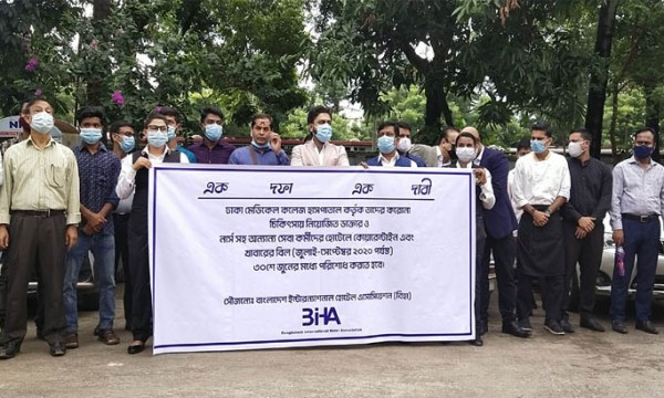 মানববন্ধনে বিহার ডিজাস্টার ম্যানেজমেন্ট কমিটির কো-চেয়ারম্যান খালেদ-উর-রহমান বলেন, ঢামেকের চিকিৎসক, নার্স ও কর্মকর্তা-কর্মচারীদের হোটেলে কোয়ারেন্টাইনের জন্য আমাদের হোটেলগুলোয় খাবারসহ আবাসনের ব্যবস্থা করা হয়। আমাদের হোটেলগুলোর সঙ্গে ঢাকা মেডিকেলের চুক্তির অন্যতম শর্ত ছিল- হোটেল কর্তৃপক্ষ প্রতি দশ দিন পর পর ঢাকা মেডিকেল কর্তৃপক্ষের কাছে বিল সাবমিট করবে এবং সাত কার্যদিবসের মধ্যে বিল পরিশোধ করা হবে। আমরা নানা বিধিনিষেধ অতিক্রম করে গতবছরের আগস্ট থেকে জুলাইয়ের বিল সাবমিট করি। কিন্তু ১১ মাস পার হলেও এখন পর্যন্ত কোনো বিল আমরা পাইনি। মন্ত্রণালয়ে যোগাযোগ করা হলে তারা বিল ছেড়ে দিয়েছেন বলে জানায়। হাসপাতাল কর্তৃপক্ষের সঙ্গে আমরা বারবার যোগাযোগ করলেও কোনো সুফল পাচ্ছি না। তাই আমাদের দাবি করা গতবছরের জুলাই থেকে সেপ্টেম্বর (তিন মাস) পর্যন্ত ন্যায্য বিল চলতি বছরের ৩০ জুনের মধ্যে পরিশোধ করার দাবি জানাচ্ছি।
