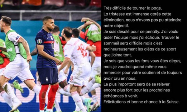ইনস্টাগ্রাম পোস্টে ফরাসি ফুটবলার লিখেছেন, “এই পৃষ্ঠাটি উলটে ফেলা খুবই কঠিন। টুর্নামেন্ট থেকে ছিটকে যাওয়া, নিজেদের লক্ষ্যে না পৌঁছনোর দুঃখ বলে বোঝানো যাবে না। পেনাল্টি মিস করার জন্য আমি দুঃখিত। দলকে সাহায্য করতে চেয়েও আমি ব্যর্থ হয়েছি। এই হারের পর ঘুমোতে যাওয়া খুবই কঠিন। কিন্তু এই খেলাটিই এমন যেখানে ভাল-খারাপ দুই সময়ই আসে। আমি জানি সমর্থকরা আমার পারফরম্যান্সে খুবই হতাশ। তাও সমর্থন এবং আমাদের উপর বিশ্বাস রাখার জন্য আমি তাঁদের ধন্যবাদ জানাতে চাই। সবচেয়ে গুরুত্বপূর্ণ বিষয়, আগামী চ্যালেঞ্জে আমরা আরও শক্তিশালী হয়ে ফিরে আসব। সুইজারল্যান্ডকে অনেক শুভেচ্ছা।” এদিকে, এদিনের ম্যাচের পর ফ্রান্সের কোচ দিদিয়ের দেশঁ যেমন এমবাপের পাশে দাঁড়িয়েছেন, তেমনই তাঁকে উদ্দেশ্য করে বিশেষ বার্তা দিয়েছে ফুটবল সম্রাট পেলে। টুইটারে ব্রাজিলিয়ান কিংবদন্তি লিখেছেন, ‘কিলিয়ান, মাথা উঁচু রাখ! আগামীকাল তোমার নতুন যাত্রার প্রথম দিন।’