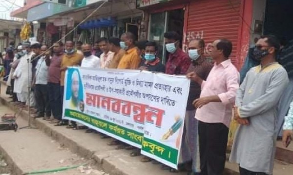এছাড়া ব্লাড ফর লাইফ ইন বাংলাদেশ এবং নবজাগরণ স্বেচ্ছাসেবী সংগঠনের নেতৃবৃন্দসহ বিভিন্ন রাজনৈতিক ও সামাজিক সংগঠনের নেতাকর্মীরা মানববন্ধনে উপস্থিত ছিলেন।