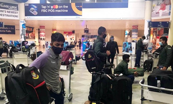 দীর্ঘ ২২ ঘণ্টার ভ্রমণ শেষে জিম্বাবুয়েতে পৌঁছেছে বাংলাদেশ। মঙ্গলবার জিম্বাবুয়ে সময় রাত ৯টা ২০ মিনিটে ম্যাচ ভেন্যু হারারেতে পৌঁছেছেন তারা। আগামীকাল বৃহস্পতিবার (০১ জুলাই) প্রথমবার অনুশীলন করবে টাইগাররা।