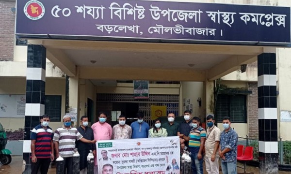 করোনা মহামারিতে রোগীদের অক্সিজেন সংকট নিরসনে মৌলভীবাজার জেলার বড়লেখা স্বাস্থ্য কমপ্লেক্সে ব্যক্তিগত উদ্যোগে ৫টি অক্সিজেন সিলিন্ডার দিয়েছেন পরিবেশ, বন ও জলবায়ু পরিবর্তনমন্ত্রী মো. শাহাব উদ্দিন এমপি।