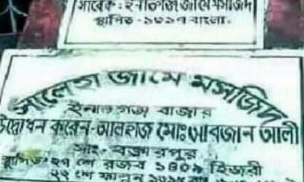 প্রুঙ্গত, ওই একটি মসজিদে নামফলক লাগানো আছে দু'টি। একটিতে লেখা আছে সালেহা জামে মসজিদ। তার উপরে আরেকটি নামফলক লাগানো আছে। তাতে লেখা আছে সাবেক ইনাতগঞ্জ জামে মসজিদ। একটি মসজিদের দুটি নাম হয় কী করে আর এটি সাবেক মসজিদ হয় কী করে- এসব নিয়ে চরম উত্তেজনা বিরাজ করছে ওই এলাকায়।