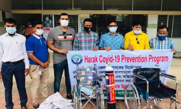 এ সময় সদর হাসপাতালে ব্যবহারের জন্য জেলা প্রশাসকের মাধ্যমে দুইটি হুইল চেয়ার একটি অক্সিজেন সিলিন্ডার,মাস্ক প্রদান করা হয়েছে।