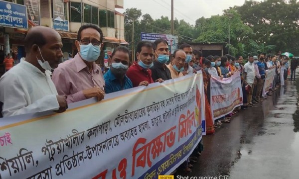 খুলনা রুপসার শিয়ালী, পটুয়াখালীর কলাপাড়া, মৌলভীবাজারের কুলাউড়াসহ দেশের নানা স্থানে সাম্প্রদায়িক উস্কানি এবং ধর্মীয় জাতিগত সংখ্যালঘুদের বাড়িঘর, ব্যবসাপ্রতিষ্ঠান, উপাসনালয়ে অব্যাহত হামলা, ভাঙচুর, লুটপাট ও ভূমি জবরদখল প্রক্রিয়ার প্রতিবাদে সিলেটের ওসমানীনগরে মানববন্ধন করেছে হিন্দু-বৌদ্ধ-খ্রিস্টান ঐক্য পরিষদ।
