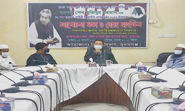 জাতির জনক বঙ্গবন্ধু শেখ মুজিবুর রহমানের ৪৬ তম শাহাদত বার্ষিকী ও জাতীয় শোক দিবস উপলক্ষে আলোচনা সভা ও দোয়া মাহফিল করেছে সুনামগঞ্জ বিচার বিভাগ।