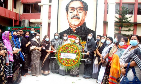 হাজার বছরের শ্রেষ্ঠ বাঙালি, জাতির পিতা বঙ্গবন্ধু শেখ মুজিবুর রহমানের ৪৬ তম শাহাদাত বার্ষিকীতে বঙ্গবন্ধুর প্রতিকৃতিতে শ্রদ্ধা নিবেদন করেছে সিলেট জেলা মহিলা আওয়ামী লীগ।