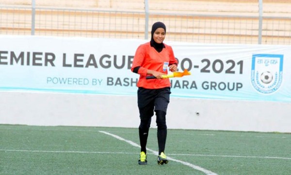 উত্তর বারিধারা-আরামবাগ ক্রীড়া সংঘের ম্যাচে সহকারী রেফারির দায়িত্ব পালন করেন সালমা আক্তার।
