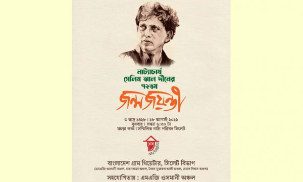 নাট্যাচার্য সেলিম আল দীনের ৭২তম জন্মদিনে বাংলাদেশ গ্রাম থিয়েটার সিলেট বিভাগের আয়োজনে ও এম এ জি ওসমানী অঞ্চলের সহযোগিতায় শ্রদ্ধাঞ্জলি অনুষ্ঠানের আয়োজন করা হয়েছে। আজ বুধবার (১৮ আগস্ট) সন্ধ্যা সাড়ে ৬টায় নগরের কিনব্রীজ সংলগ্ন সম্মিলিত নাট্য পরিষদ সিলেটের মহড়া কক্ষে এ অনুষ্ঠানের আয়োজন করা হয়েছে।