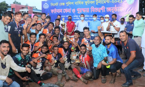 দীর্ঘ এক সপ্তাহ লড়াই শেষে গত সোমবার বিকেলে সিলেট জেলা পুলিশ লাইন্স মাঠে সিলেট রেঞ্জ ফুটবল টুর্নামেন্টের ফাইনাল খেলা সম্পন্ন হয়েছে। খেলায় মৌলভীবাজার জেলা পুলিশকে ৪-২ গোলে হারিয়ে চ্যাম্পিয়ন হয় হবিগঞ্জ জেলা পুলিশ।