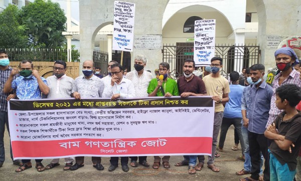 ডিসেম্বরের মধ্যে প্রাপ্ত বয়স্ক সব নাগরিকদের টিকা প্রদান নিশ্চিত করাসহ পাঁচ দফা দাবিতে সিলেটে সমাবেশ করেছে বাম গণতান্ত্রিক জোট সিলেট জেলা। কেন্দ্রীয় কর্মসূচির অংশ হিসেবে বুধবার (১৮ আগস্ট) বিকেল পাঁচটায় নগরের কোর্ট পয়েন্টে এই সমাবেশ অনুষ্ঠিত হয়।