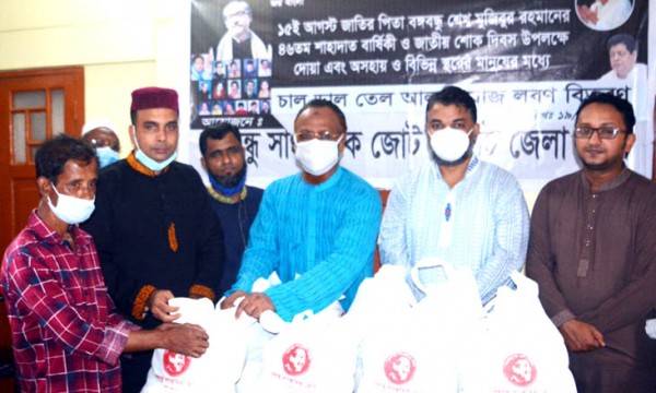 বঙ্গবন্ধু সাংস্কৃতিক জোট সিলেট জেলা শাখার উদ্যোগে জাতির পিতা বঙ্গবন্ধু শেখ মুজিবুর রহমানের ৪৬তম শাহাদাত বার্ষিকী ও জাতীয় শোক দিবস উপলক্ষে অসহায় ও দুস্থদের মধ্যে খাদ্যসামগ্রী বিতরণ করা হয়েছে। বৃহস্পতিবার (১৯ আগস্ট) বিকেলে নগরের রায়নগর এলাকায় এ খাদ্যসামগ্রী বিতরণ করা হয়।