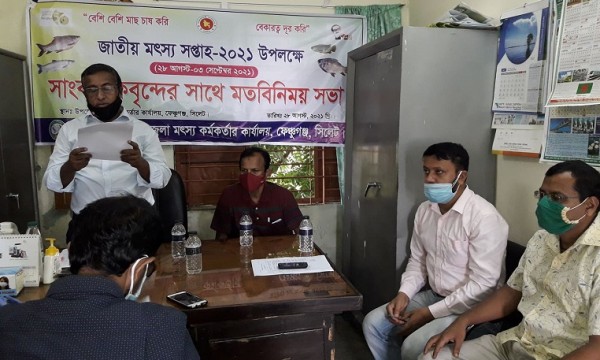 সিলেটের ফেঞ্চুগঞ্জে জাতীয় মৎস্য সপ্তাহ-২০২১ উপলক্ষে সাংবাদিকদের সঙ্গে মতবিনিময় সভা করেছে উপজেলা মৎস্য অধিদপ্তর।
